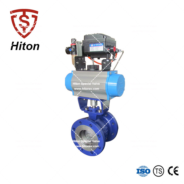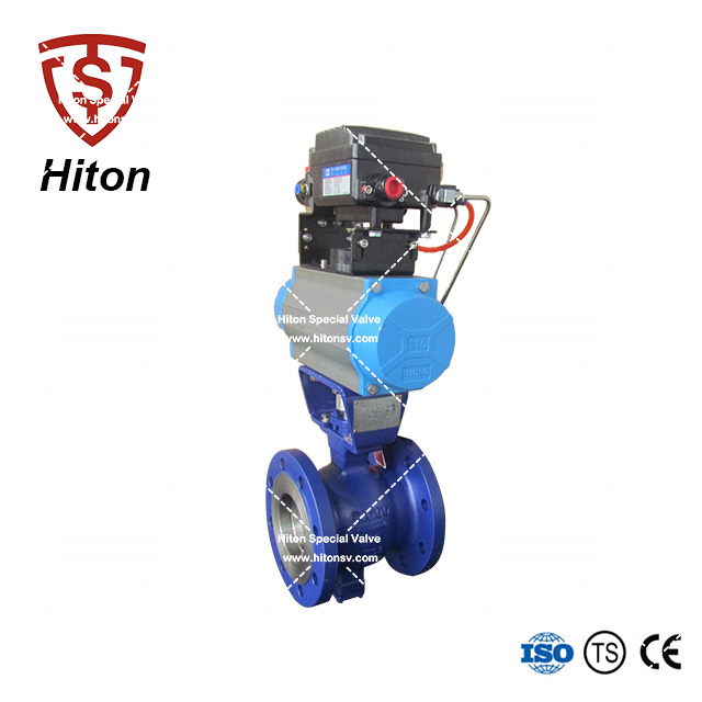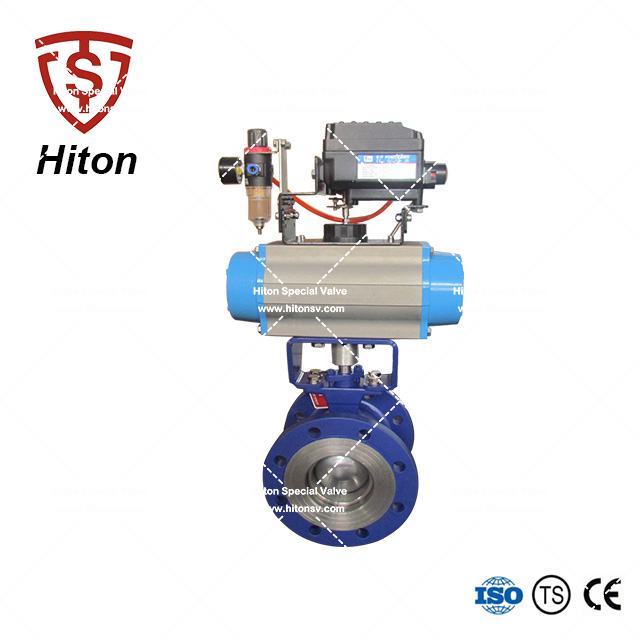 我公司研發(fā)的氣動(dòng)法蘭V形球閥是一種直角回轉(zhuǎn)的高級(jí)控制閥,它的啟閉件是帶特殊V型開(kāi)口的半球體,具有鋒利的刃口。在球體回轉(zhuǎn)過(guò)程中,密封面具有強(qiáng)有力的切斷力和自清潔功能。球體的V型開(kāi)口與閥座流道形成一個(gè)扇形區(qū)域,在回轉(zhuǎn)過(guò)程中可改變流道截面積,形成對(duì)介質(zhì)的線性等比例精確調(diào)節(jié)。因此V型調(diào)節(jié)球閥同時(shí)具備調(diào)節(jié)和開(kāi)關(guān)兩種功能,可與氣動(dòng)或電動(dòng)執(zhí)行器配套,廣泛使用于造紙、化工、石油、化纖、電力、冶金、制藥、環(huán)保等領(lǐng)域的控制系統(tǒng)。